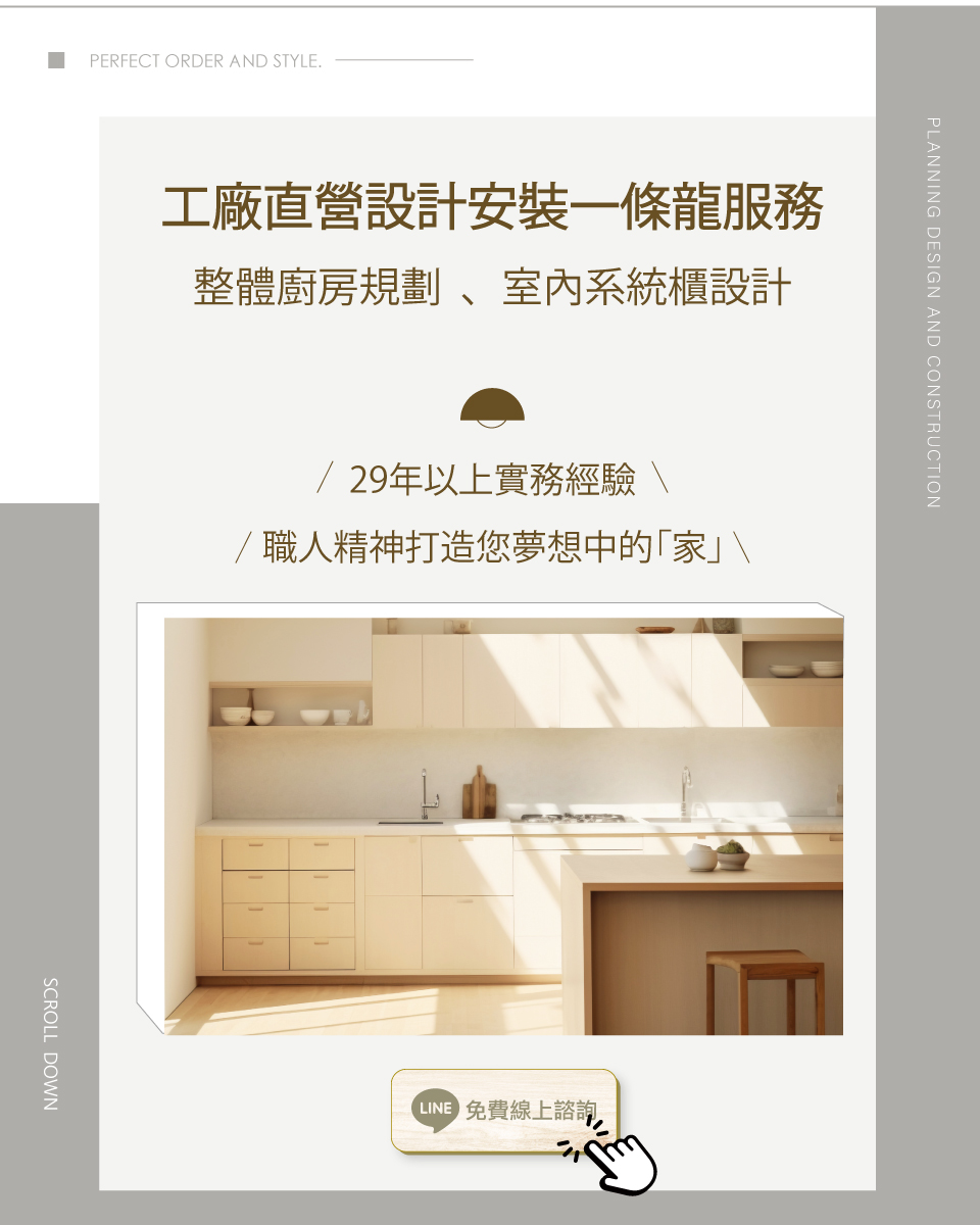 非人為損壞情況下,永和名廚提供您一年產品保固。當廚具或系統櫃超過保固或人為因素損壞時,我們也將協助您進行維修或更換。