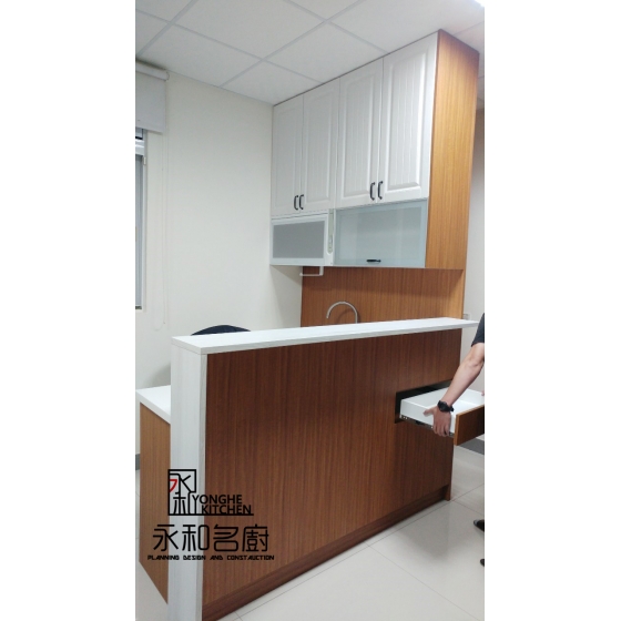 吧檯桌的背面,還有做一個小鞋櫃,讓進門時,可以有收納鞋子的空間