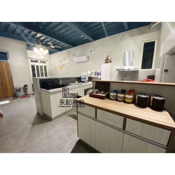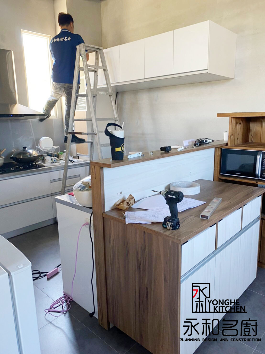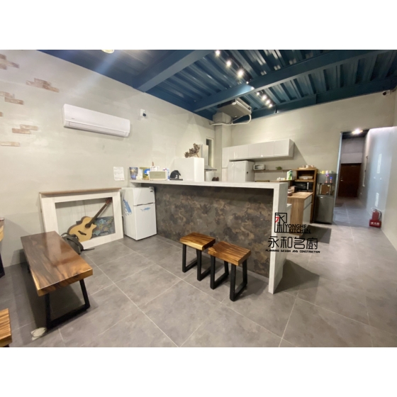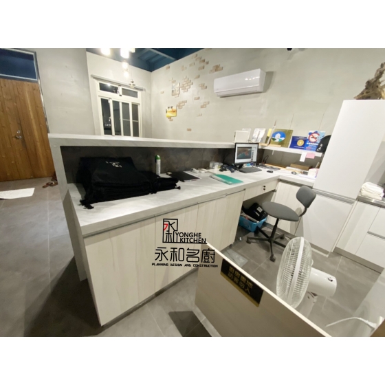 ▲將原本電視牆部分,更改成辦公桌延伸至廚房,讓整體格局看起來更大。