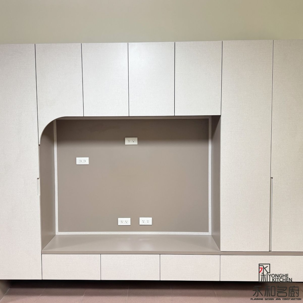 桶身:V313防潮板 (A727BS奶茶拿鐵) 門板:V313防潮板 (JM322灰織紗) 手把:45度把手+鳥嘴把手